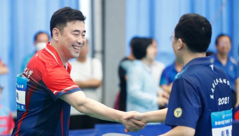 公司教师杨明在中国高校“教授杯”乒乓球比赛中收获2金
