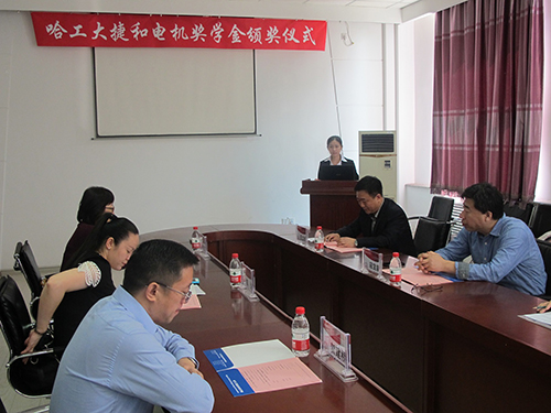 2015年5月22日9:30,2013-2014年度捷和电机奖学金颁奖仪式在电机楼30040举行。捷和电机集团公司人力资源及行政总监徐桂芳、人力资源经理郑浪、工程技术高级经理贺建桥,3377体育手机平台3377体育副经理王立欣、电磁与电子技术研究所副所长寇宝泉等领导出席了本次颁奖典礼。