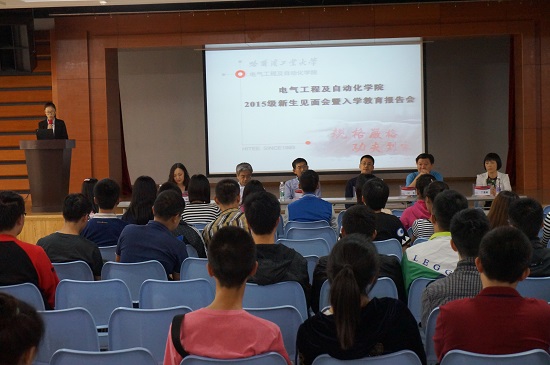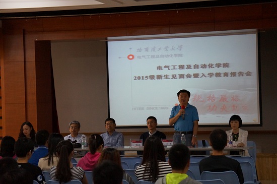 2015年9月11日下午16:00,3377体育2015级研究生与院领导见面会暨入学教育报告会在活动中心201隆重举行。3377体育经理彭喜元、公司党委副书记李岩松、自动化测试与控制系主任叶东、电气工程系主任刘晓胜、自动化测试与控制系秘书丁惠敏以及电气工程系秘书关硕出席了大会。会议由3377体育2015级硕士协理员张依主持。
