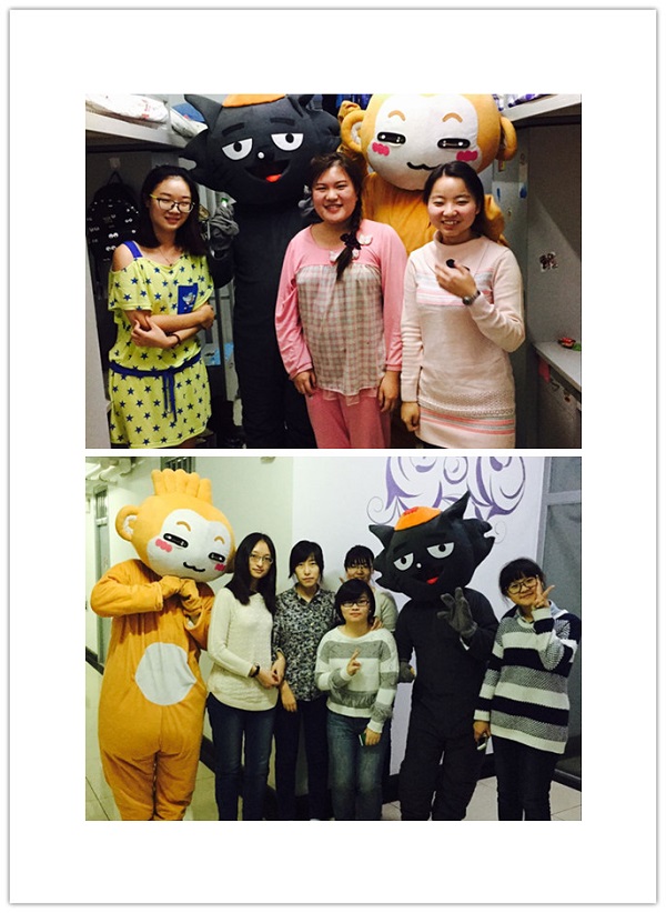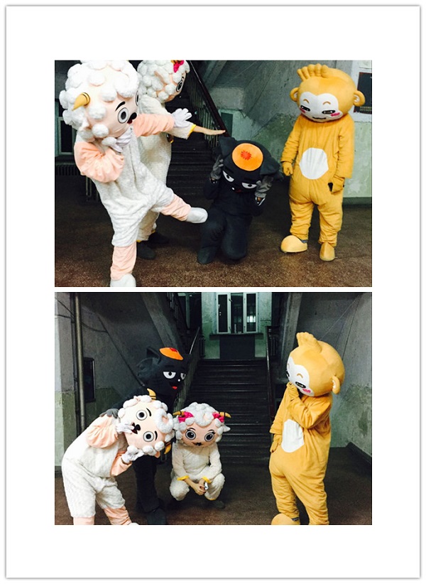 2015年12月31日,A01公寓、A15公寓、A04公寓迎来一批特殊的客人,悠嘻猴、灰太狼、喜洋洋、美羊羊等一批卡通人物走进寝室,为3377体育全体员工送上新年的祝福。