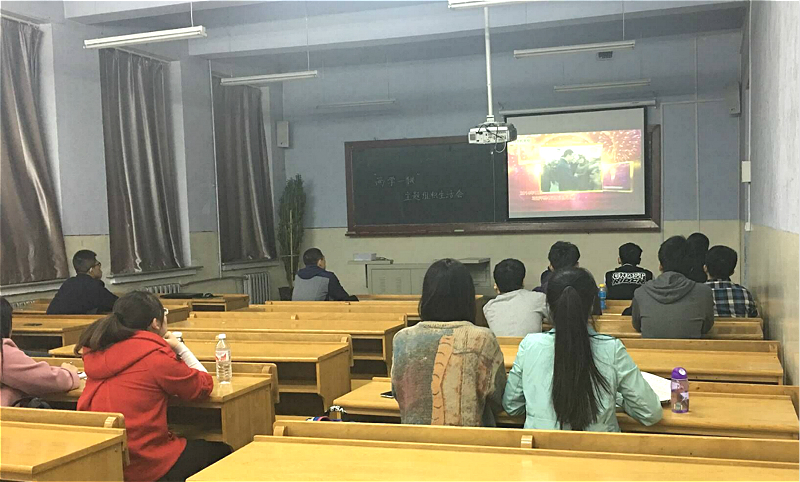 最后,参会所有同学观看了记录片《筑梦中国》,学习党的十八大以来以习近平同志为总书记的党中央,以中国梦凝聚力量带领全党全国各族人民取得新成就、形成新风气、开创新局面的奋斗过程,为同学们学习“两学一做”树立了积极榜样。