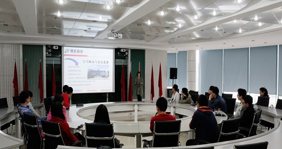 来到博实自动化股份公司以后,人力资源部李真真副部长热情的接待了我们,她为了使同学们对博实公司有一个初步的了解,带领同学们来到公司的会议室,通过PPT向大家介绍了公司的建立、发展、壮大的一系列过程,并阐述了公司未来的发展方向以及企业规划等。,通过,李真真部长的详细热情的介绍,同学们不仅感受到了博实自动化股份公司在全国石化化工后处理成套设备的研发的领先地位,也了解到博实股份公司的董事长以及多位高层领导都是哈工大的员工,为此同学们感到无比自豪。
