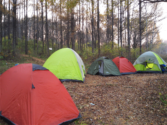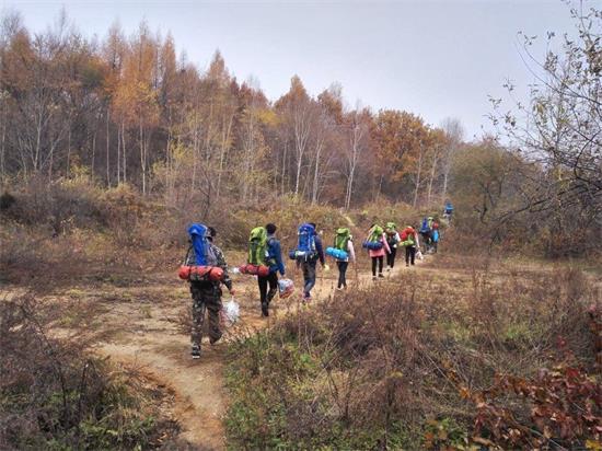 背起厚重的登山包,全体成员于15日上午十点从公司出发,乘车前往目的地,下午一点到达平山西泉眼水库入口。新老Teamers开始了负重徒步行。其中男生人均负重15公斤,女生人均负重10公斤。午后的阳光透过金黄的秋叶,在地上投射出斑驳的剪影。阵阵凉爽的微风拂过脸庞,带来大自然的清新气味。远方连绵不绝的山与蔚蓝的天空融成一幅美丽秋景图。队员们一路欢歌笑语,欣赏美景,最终于下午三点半到达目的地——西泉眼水库。负重徒步行程累计超过17公里。到达后开始了一系列的露营准备活动,在14级Teamers的指导下,新老Teamers协作搭帐篷,使用生火制作晚饭。大家吃着队友们亲手做的晚饭,疲惫一扫而光,脸上洋溢着开心的笑容。饭后大家收拾好餐具和垃圾,坐在帐篷前赏月,倒影落在水面上别有一番意境。郊外的夜晚很安静,大家在帐篷里玩起了一个个有趣的小游戏,一片欢声笑语。虽然外面的气温较低,但有帐篷和睡袋,大家围在一起,丝毫不觉得冷。