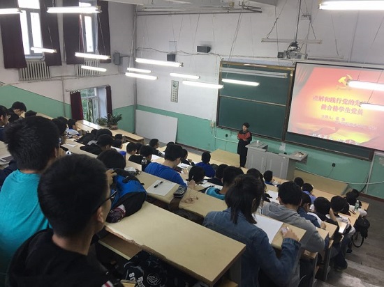党课伊始,姜老师面向全体发展对象同学深情朗读了李长春的员工感怀。姜老师充满激情和饱含感情的朗诵感染了在座的每一位同学。随后,姜老师从理解党的先进性、践行党的先进性、继承哈工大传统三个方面展开了本次党课。