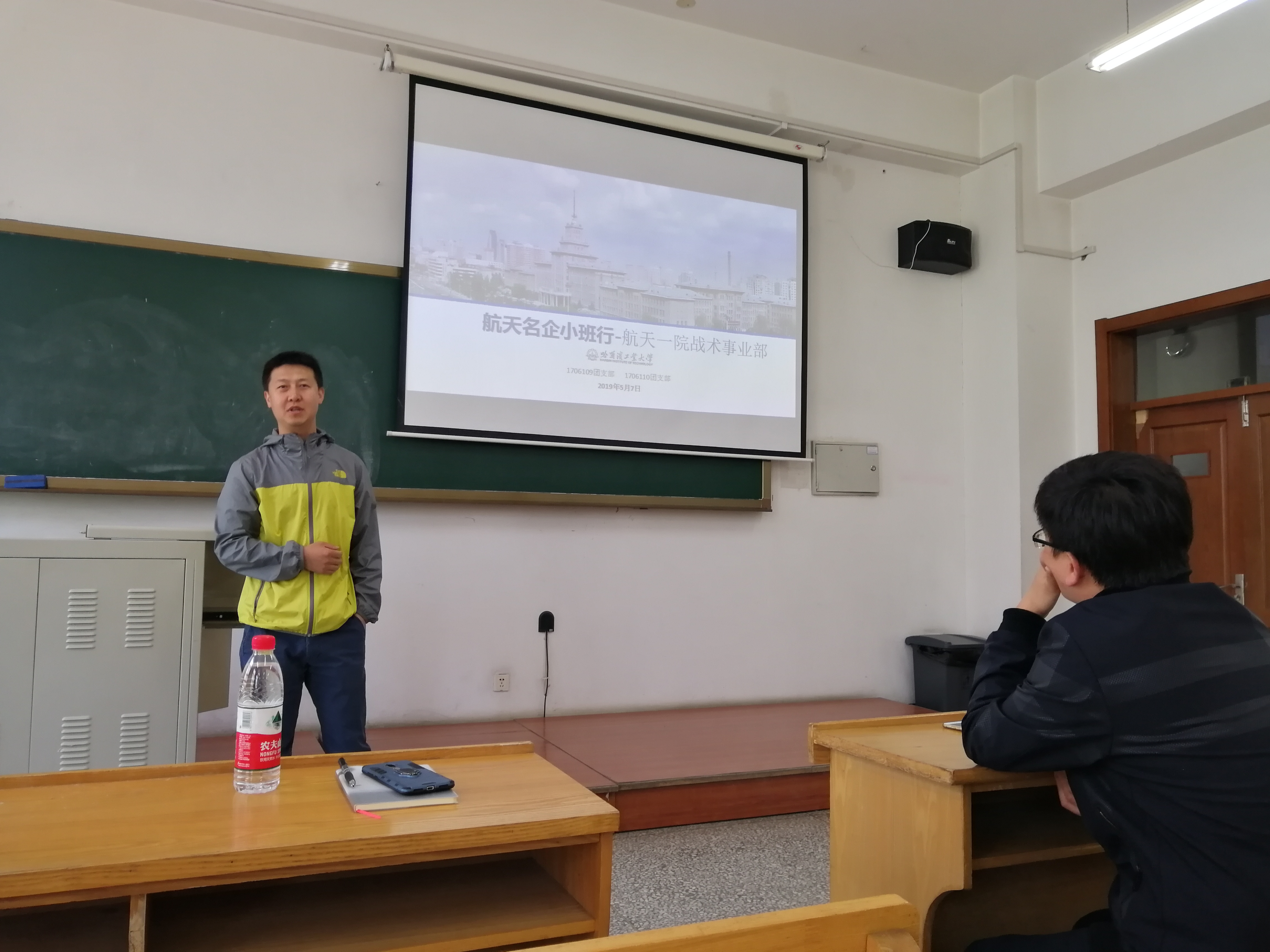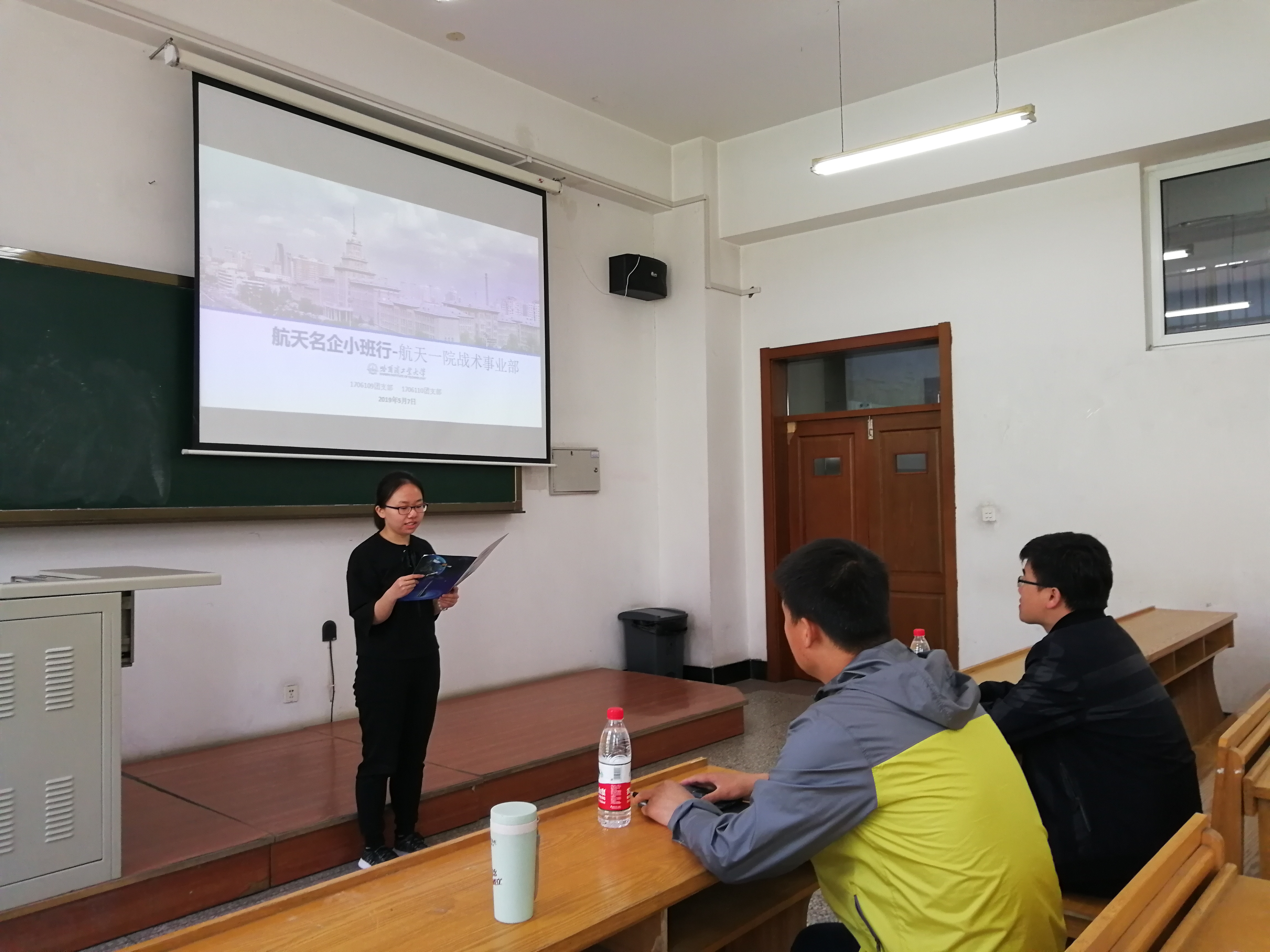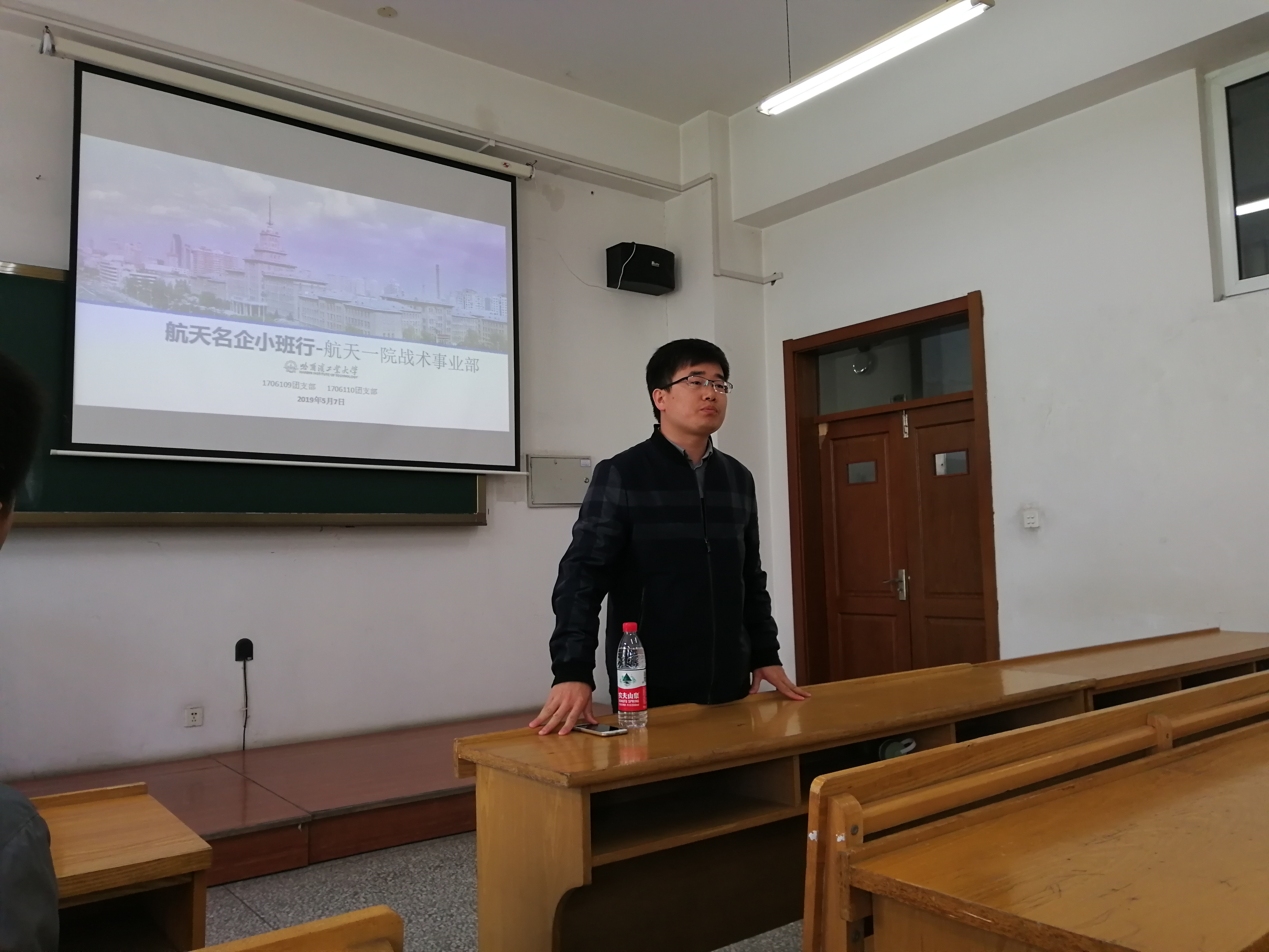 2019年5月7日上午,1706109和1706110团支部联合举办了“航天名企小班行”主题班会,很荣幸邀请到了来自航天一院战术武器事业部的专家老师来参加本次主题班会。