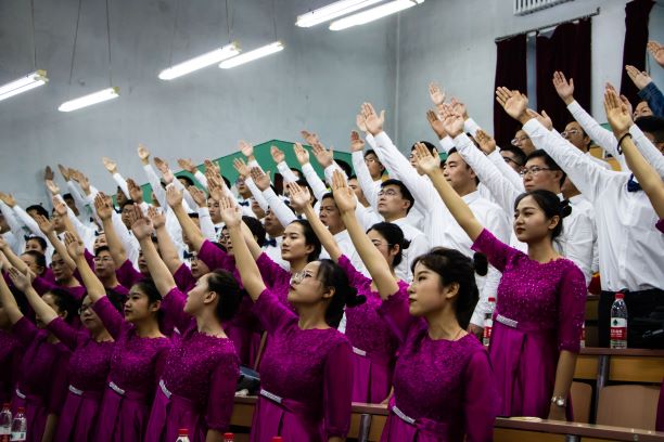 “我和我的祖国,一刻也不能分割”开场声音坚定激昂,透露出了与祖国不可分割的决心。诗朗诵《向往》中“从1920到2019,向往变成信仰,从青春年少到白发苍苍,信仰变成力量”,。从黑发到白首,每一位电气人都在自己的岗位上默默付出,为早日实现“中国特色、世界一流、哈工大规格”的百年强校,为祖国电气事业的振兴献出了宝贵的一生。“不忘初心,满怀人民的向往,百炼成钢,脚步从容在路上”。电气师生感情饱满,内心澎湃,短短几句便表达出了对时代最真实的倾诉与向往。