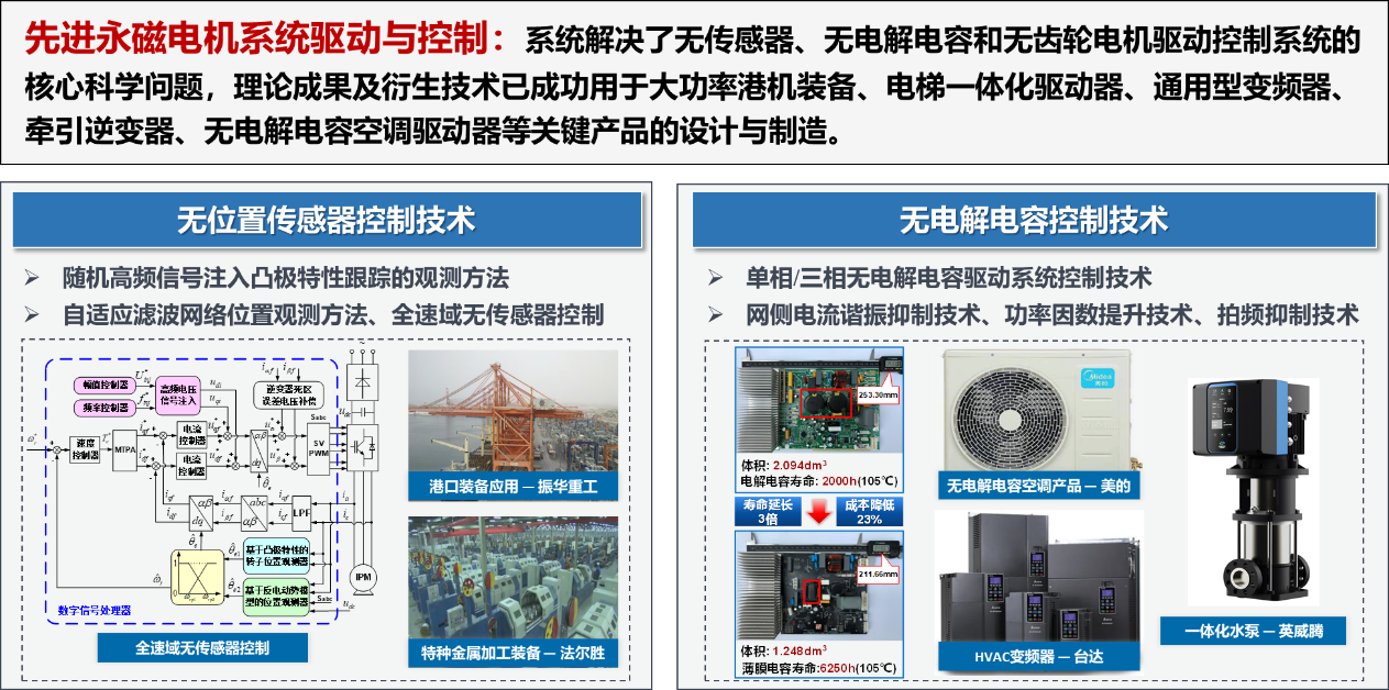 电力电子与电力传动研究所聚焦当代电力电子与电力传动领域的重大科学问题和工程技术难题,通过国家科技重大专项、国家重点研发计划、国家自然科学基金重点项目等支撑,在交流电机驱动控制、高精度伺服控制系统以及电力电子化电力系统方向取得了具有国际先进水平的创新性成果,应用于40余家企事业单位,取得了突出的社会和经济效益。