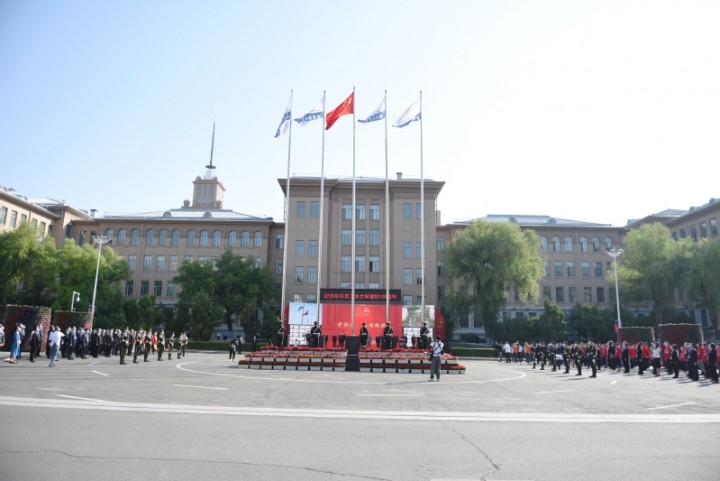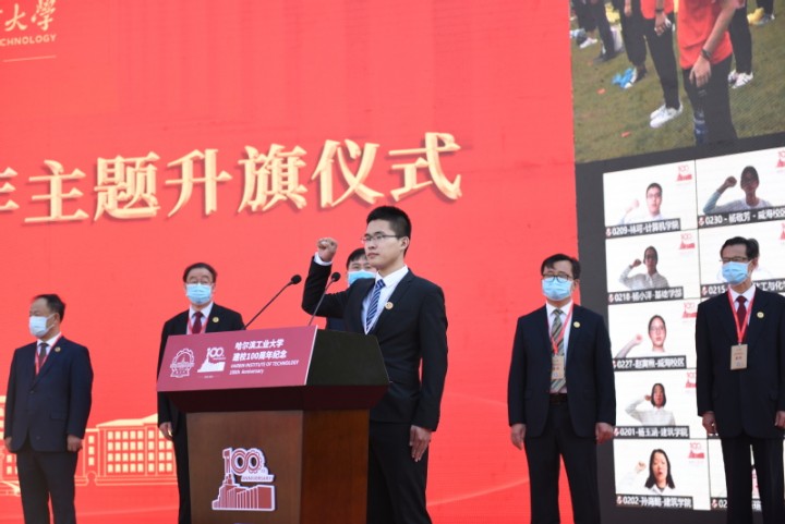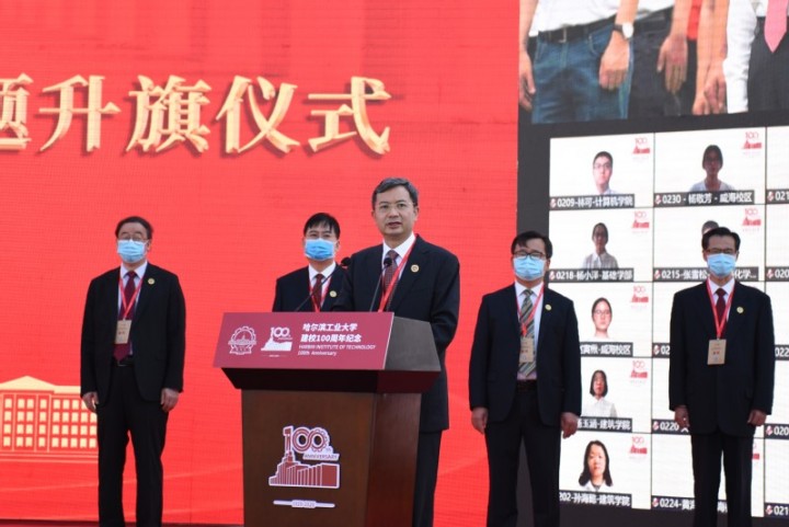 熊四皓指出,今天,我们迎着哈工大新百年的第一缕曙光,共同举行一校三区主题升旗仪式,向全体师生员工和海内外广大员工致以节日的问候!一百年来,特别是新中国成立70多年来,哈工大坚持面向国家重大需求、面向国际科技前沿、面向国民经济主战场,忠诚报效、激励自强,以有口皆碑的人才培养特色、享誉全球的科学研究实力、务实担当的社会服务能力、胸怀家国的文化传承根脉,向党和人民交上了优秀答卷。