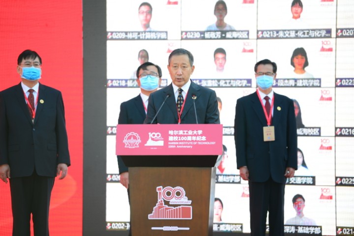 最后,他向全体师生员工、海内外广大员工发出号召:跨越百年,我们恰逢其时;开辟新路,我们任重道远。让我们更加紧密地团结在以习近平同志为核心的党中央周围,增强“四个意识”,坚定“四个自信”,做到“两个维护”,为实现“两个一百年”奋斗目标和中华民族伟大复兴的中国梦,贡献更多的哈工大智慧和力量。