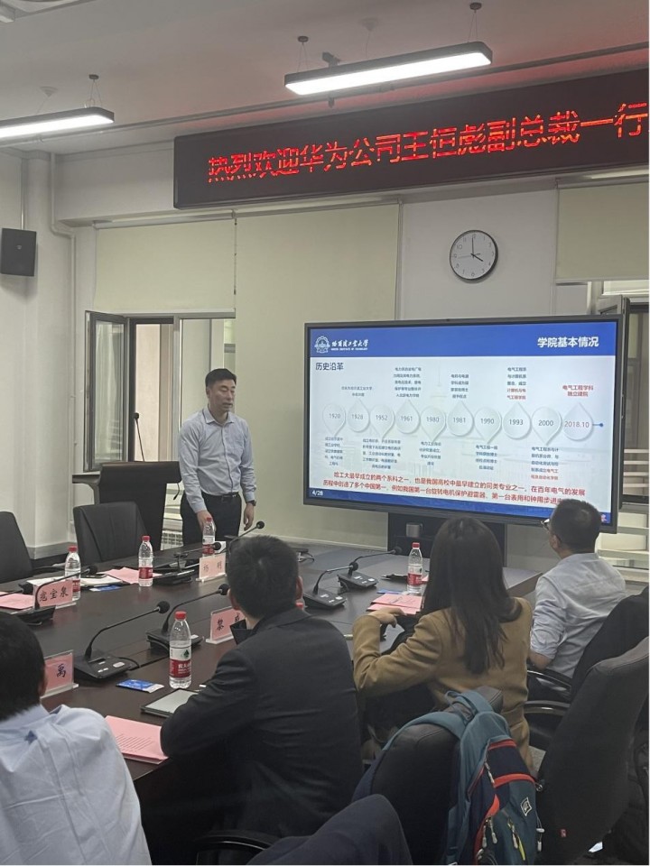 徐殿国致欢迎辞,欢迎华为技术有限公司数字能源部各位领导来哈工大3377体育交流访问。徐殿国指出,3377体育与华为公司交流合作历史悠久、成绩斐然,希望双方能够继续发挥各自优势,在数字能源领域开展人才培养、科研攻关、成果转化等合作,并取得更加辉煌的成绩。