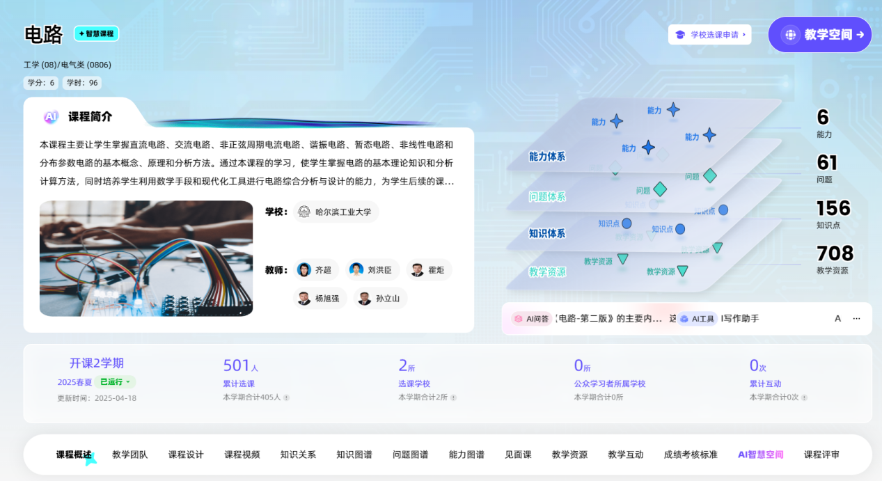 为积极推进人工智能技术与公司产品的深度融合,齐超教授团队建设了“基于知识图谱的AI+电路智慧课程”,该课程已在智慧树网上线共享运行;出版了《工程电路分析基础》新形态教材。智慧课程注重以能力培养为目标、以问题解决为核心、以知识体系为基础、以教学资源为支撑,包括708个教学资源、156个知识点、61个问题、6个能力体系(如图4所示);新形态教材注重工程应用案例,同学们扫描二维码就可以了解到相关知识点的最新科研成果和典型工程案例,实现了优质教学资源整合与共享,构建了课程的完整知识架构,确保员工能够系统地掌握学科的核心知识点,基于知识图谱显著提升了员工的课堂学习成效。