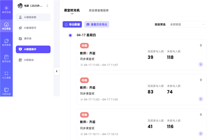 图7 AI工作台课堂时光机反馈员工作答情况