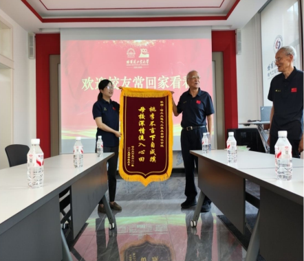 6月9日在电机楼30019座谈期间,公司党委书记聂秋月系统介绍了公司多年来在科技研发、人才引育、员工培养等方面取得的丰硕成果。员工们高度肯定并赞扬公司取得的成绩,并向公司赠送“桃李不言,下自成蹊。母校深情,流入心田。”的锦旗,表达对公司的感恩与敬意。